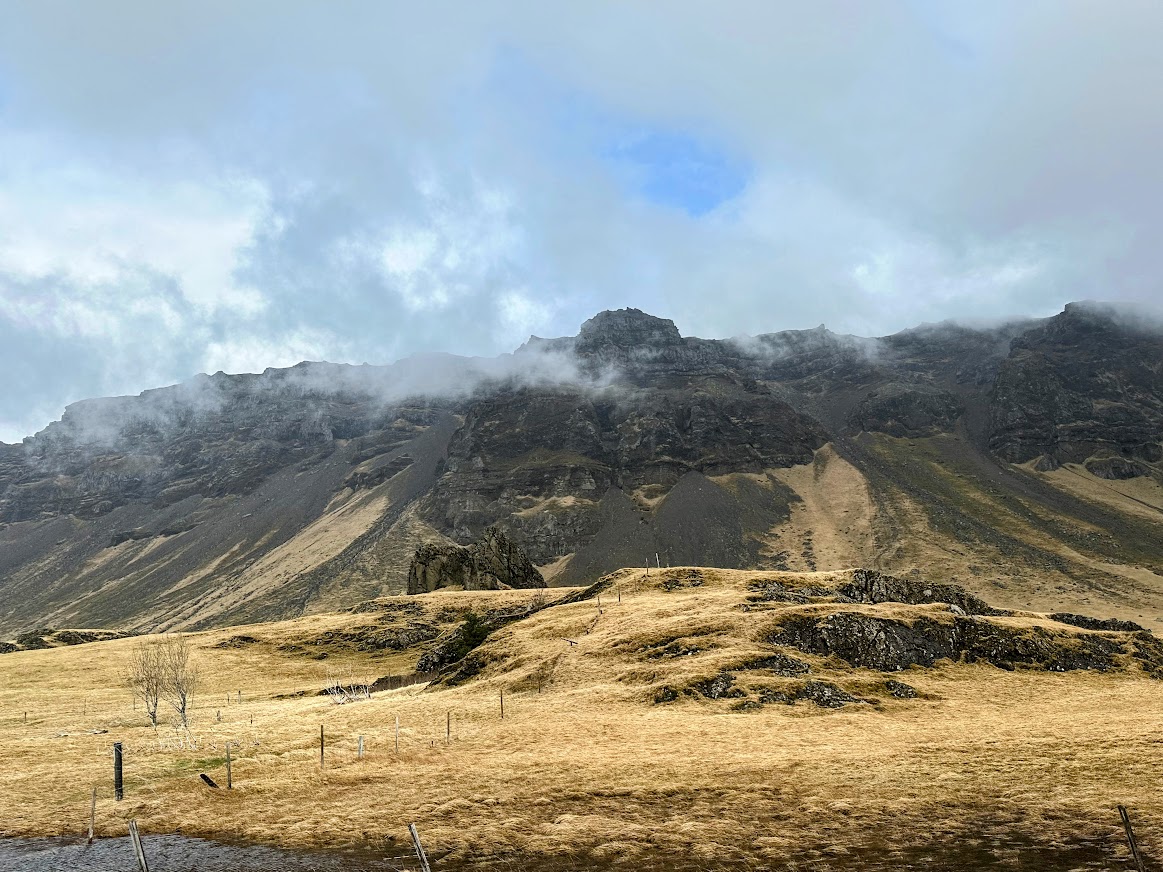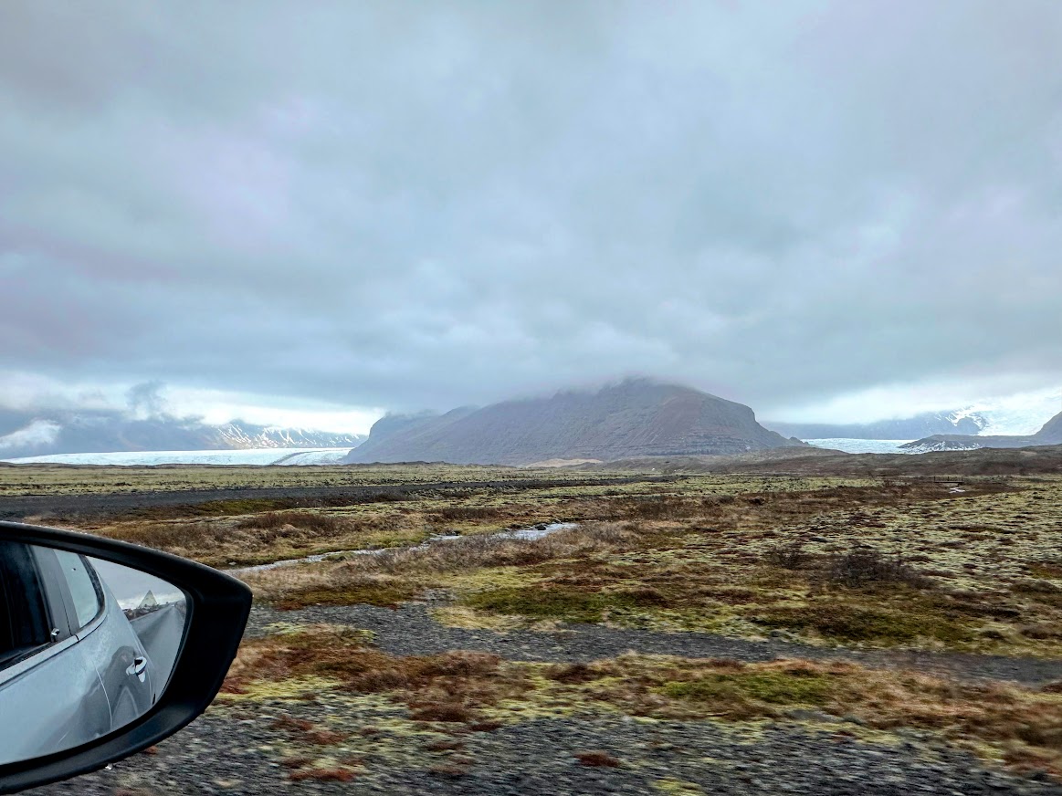 It was mid-April. Although the roads we took were free from snow and ice, the weather was on-and-off, with alternating sun, clouds, fog, drizzle, and rain. The day started with a nice, cold, breezy atmosphere. We enjoyed our last breakfast in Skaftafell hotel, hoping we could stay there again someday and enjoy its romantic ambiance. We gave the hotel a 10, and left it with this review: “Perfect location (by the road, close to a gas station and mini-grocery store, and lovely hiking trails), spacious room, very good breakfast. The mountains served as a lovely backdrop.“