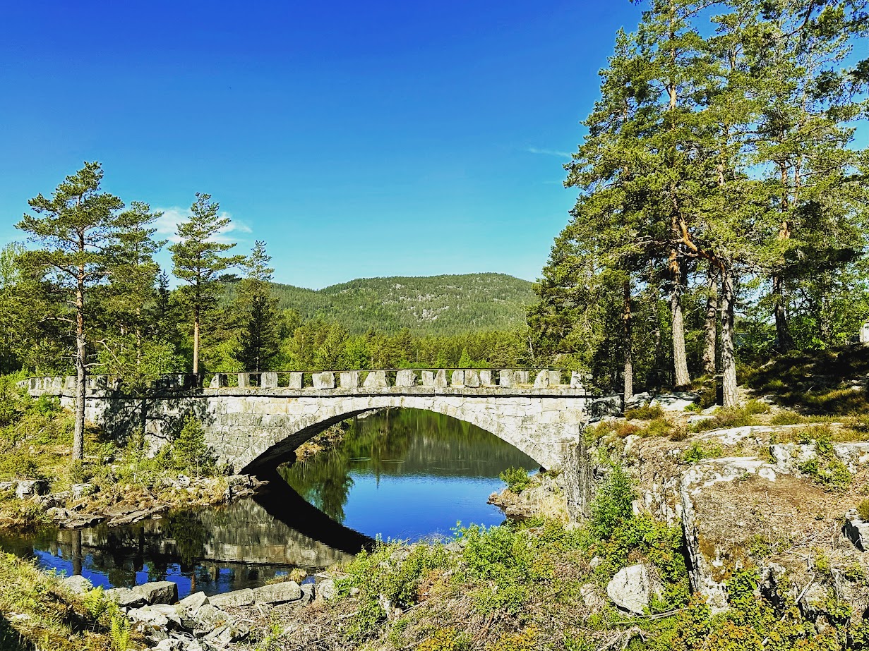 Then, it was time to go home to the kitts. We took the road on the other side of the elongated lake Tinn, and had lovely views of Austbygd in Telemark. We also passed by the Mæle Stone Bridge, built in the 1800s.