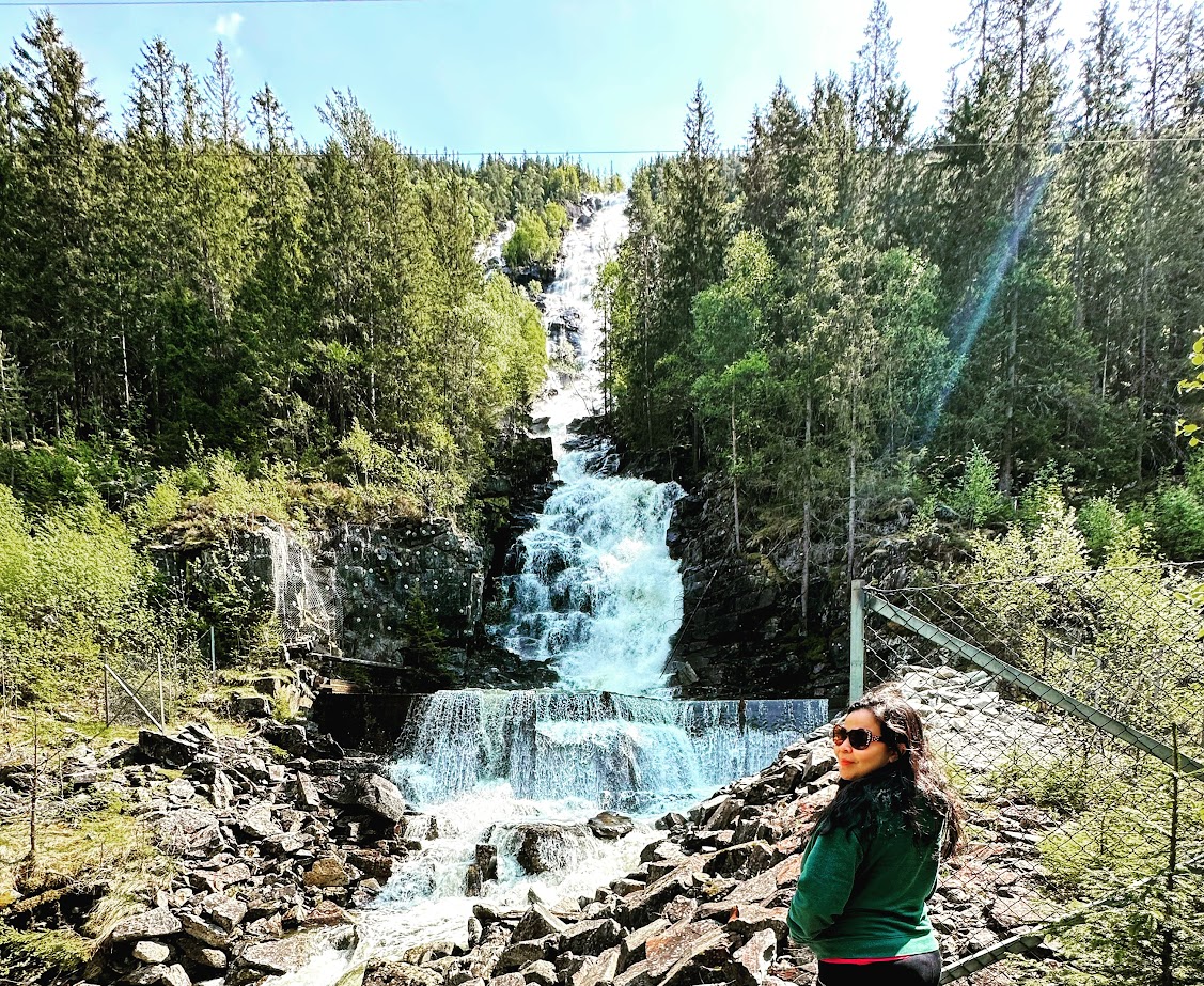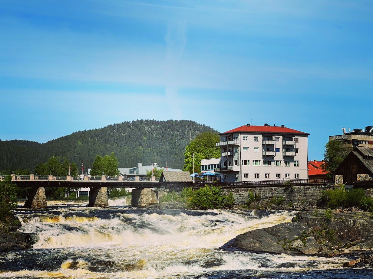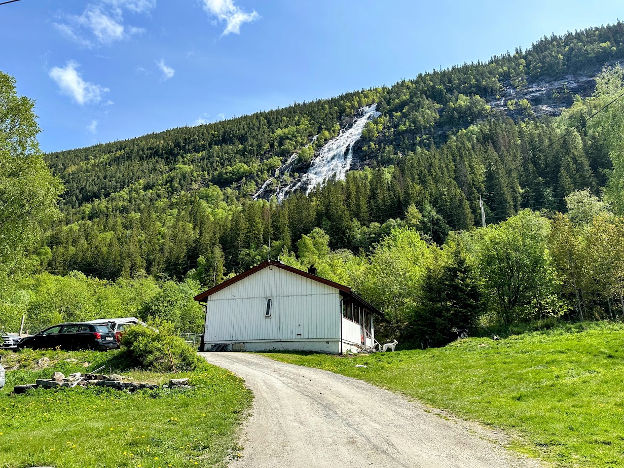 We wanted to go further to Rjukan, but the roads were closed. So, we decided to turn back and move on to our accommodation. But first, we checked out a strong waterfall on the way, the Kvitåefossen. It is privately managed, so it is not allowed to touch the water. This is probably one of the first waterfalls visitors will spot in Rjukan, and there’s a few, most of which are producing energy.