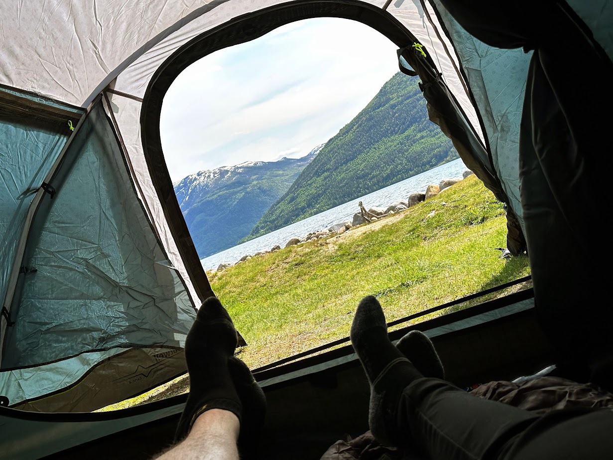 Our first camping trip this year was to a beautiful, highly recommended Sandviken Camping by Lake Tinn (Tinnsjå) in Telemark, Norway. It’s about a 2-hour-drive from Drammen, and luckily, we were graced by a very nice, sunny weather (hello, June). The plan was: a bit of sightseeing in Rjukan, which I visited in 2016 with the UiO International Summer School students, and just relaxing in a tent by the lake.
