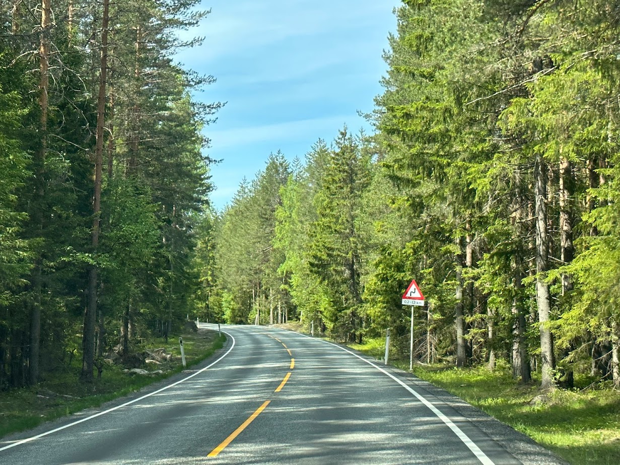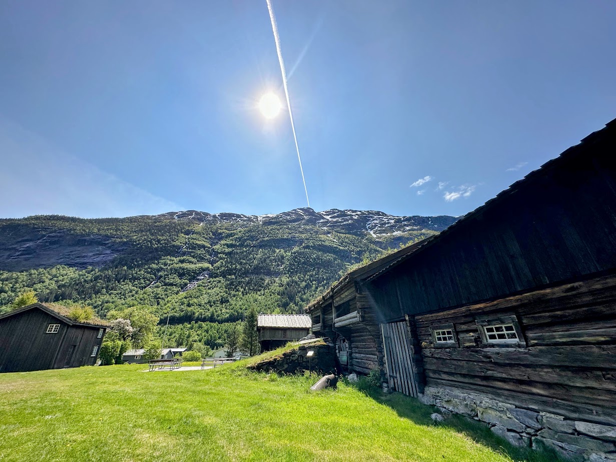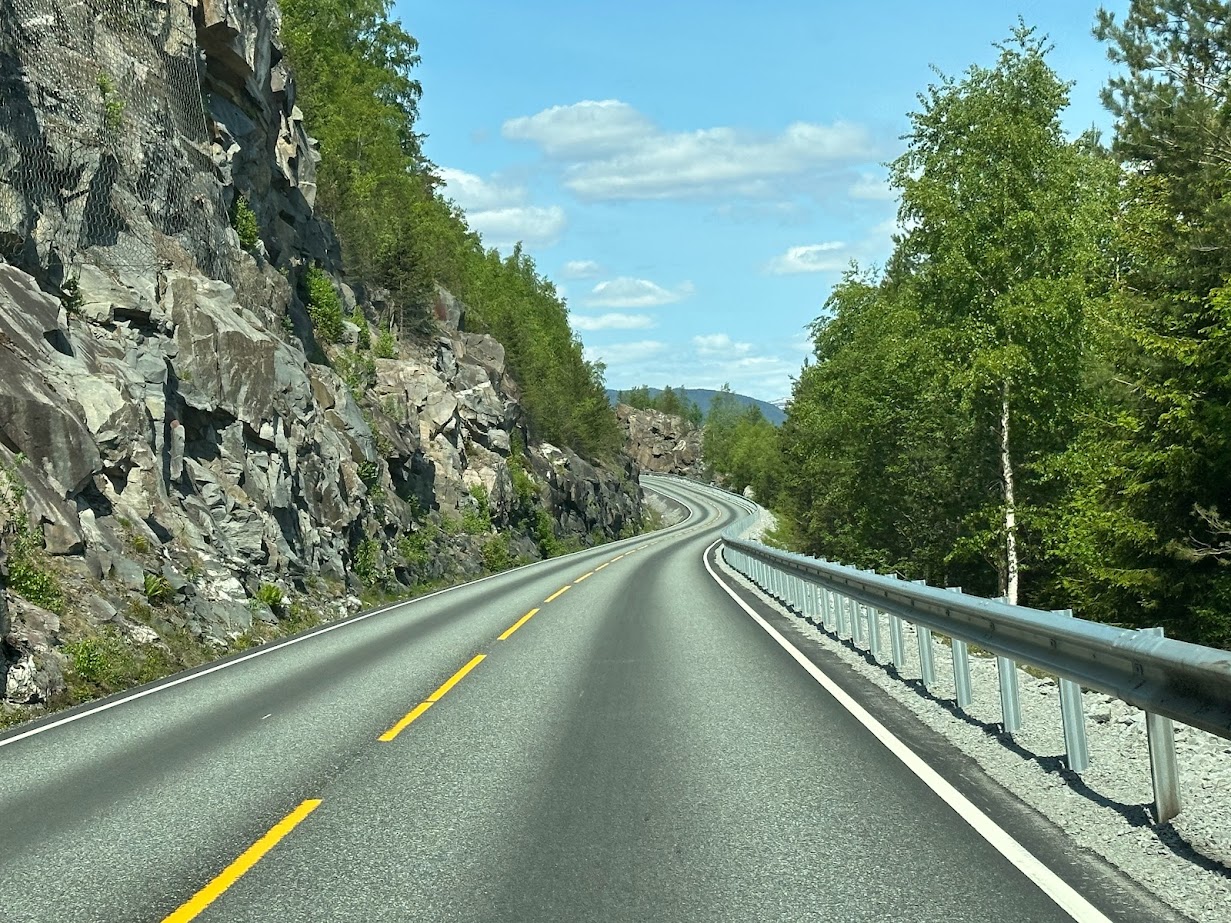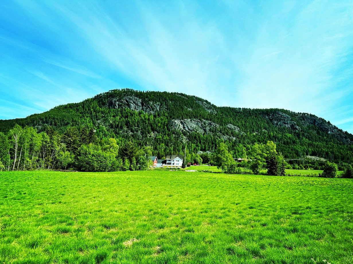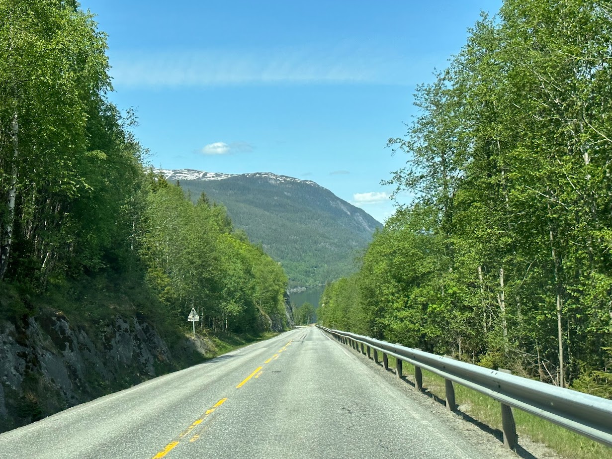 Driving on, we found ourselves on a lovely road surrounded by green fields and mountains, with herds of sheep and other farmy animals grazing. And a glimpse of the snow-capped Gaustatoppen, the highest mountain in the Vestfold and Telemark region, with a height of 1883 meters. I first saw the mountain in 2016. I hope we can get to visit the top one day. 🙂