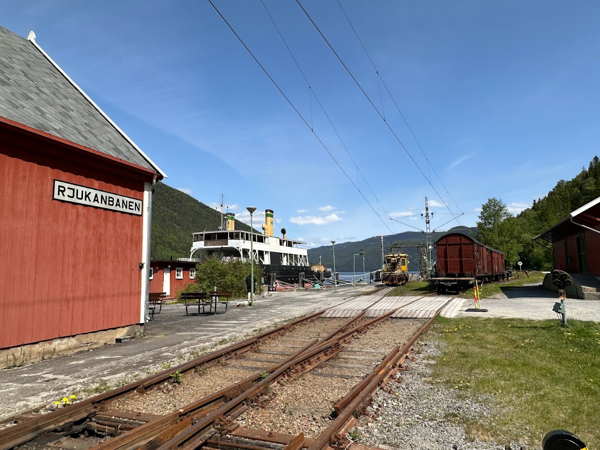 We reached Mæl train station at around 12:30 pm. It’s a nice viewing point for the elongated lake Tinn, which has a surface area of 51.43 km2 and depth of 460 meters, making it one of the deepest lakes in Europe. Tinnsjå is also a landmark because of the heavy water sabotage in 1944. Germany was transporting heavy water from Rjukan, when the ferry they were using, SF Hydro, was sunk in the lake by the Norwegian resistance. There’s a very good miniseries about it which can be watched here: https://tv.nrk.no/serie/kampen-om-tungtvannet.