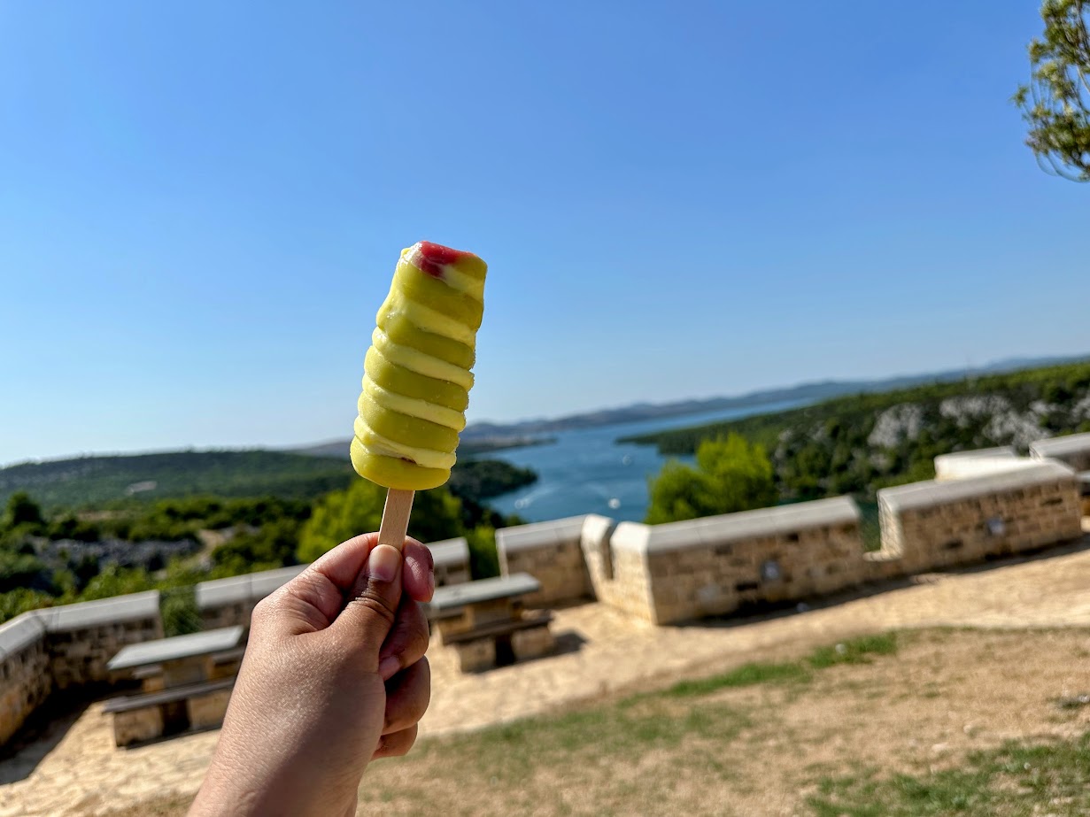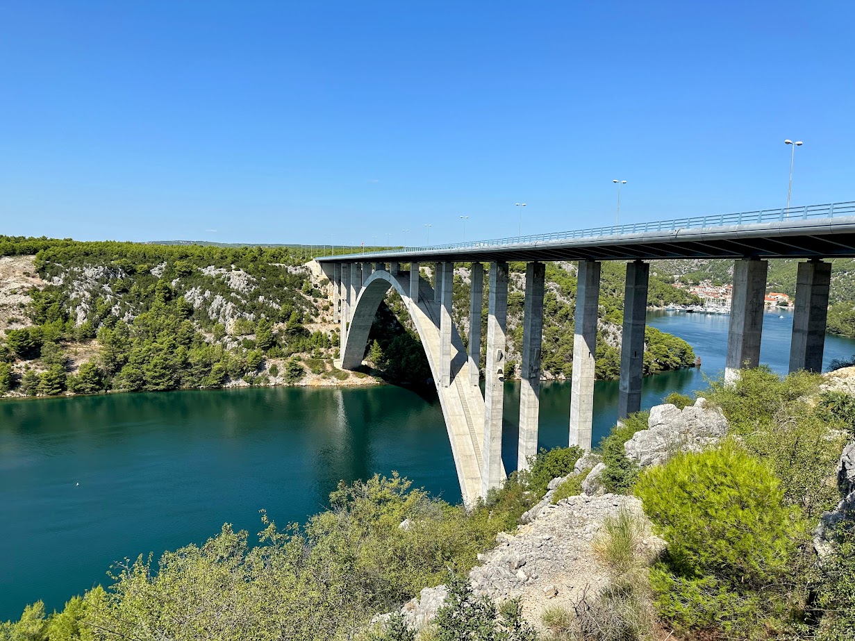 Our next stretching / icecream stop was by the Krka Bridge in Lozovac at around 2pm. I was so glad we stopped there, because the views were absolutely amazing! The arch bridge is made of concrete and is 391 meters long. It was opened in 2005. From there, you can get a glimpse of the Krka river canyon. There’s also the Gospa od Puta (Mother and child) statue in the viewing platform. From there, one can get a quick glimpse of the area. Krka National Park is also a popular destination in Croatia, with its 7 waterfalls and monastery. We didn’t get to explore the national park, perhaps another day, but we enjoyed and appreciated the views from a distance.