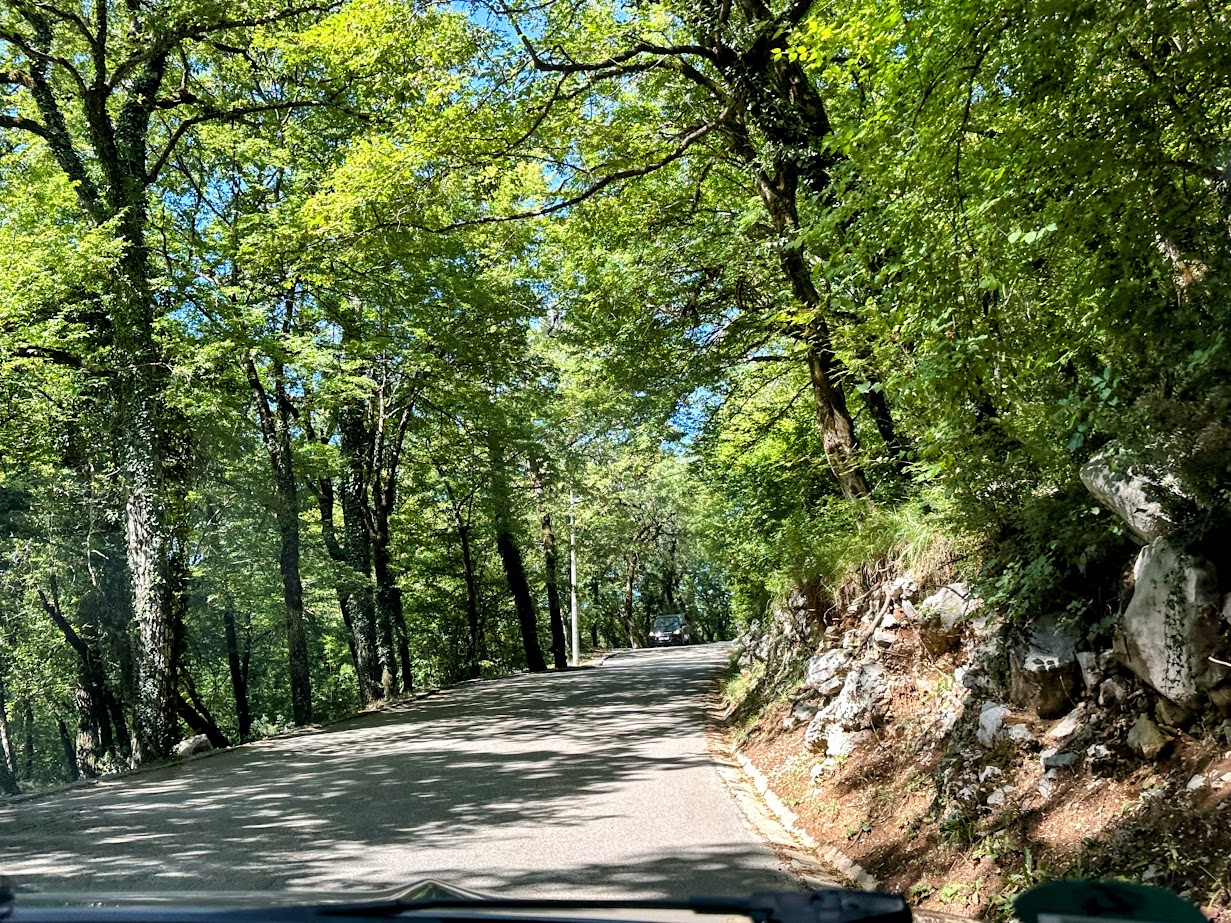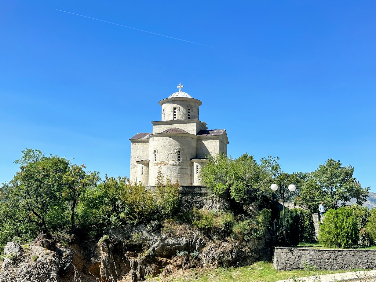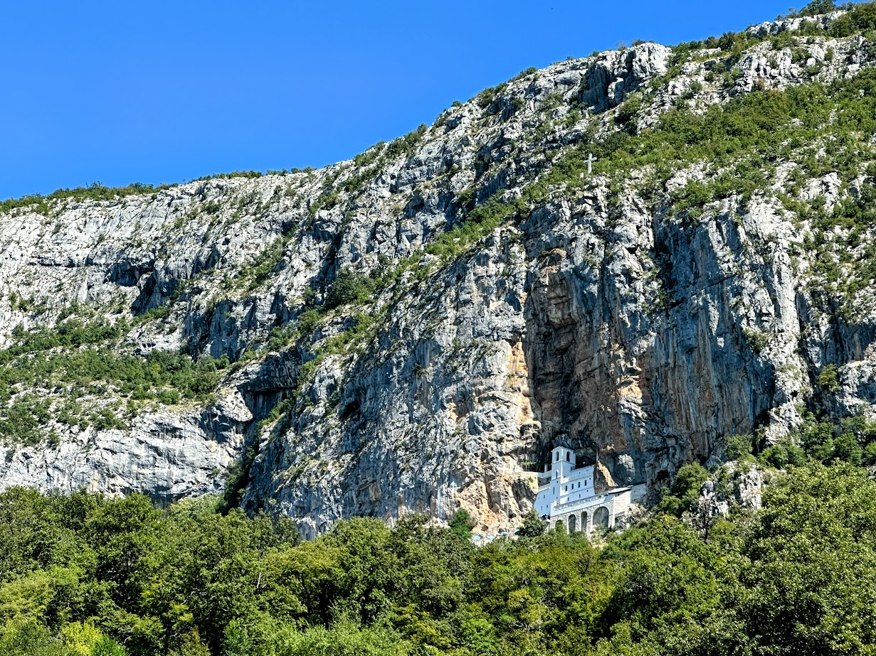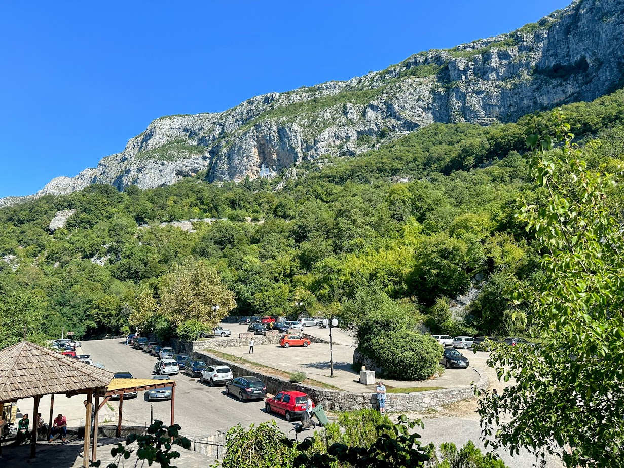 Initially, I wanted to turn and start the drive down and back to the main road. But Carl wanted to see the Upper Ostrog monastery, the very one carved on a huge rock. What could I do? Of course, I sat tightly in the passenger seat and went with him. All the fear was just in my mind, as usual. The drive farther up was not that bad, despite the roads being narrow.