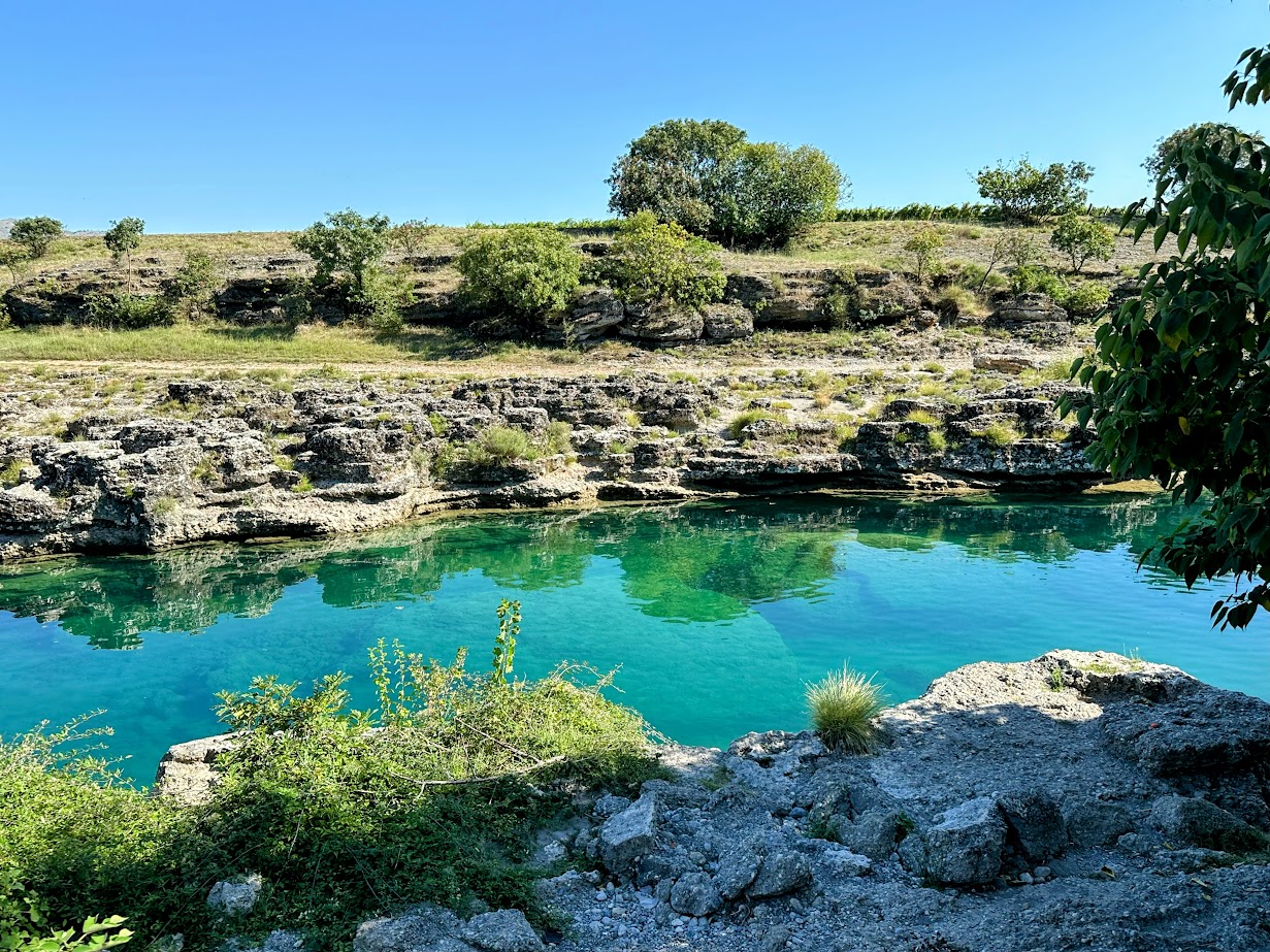 Before leaving Podgorica, we decided to check out the Cem or Cijevna river canyon. We thought that perhaps, we could bathe there. There’s also a portion of it which has gotten the name Niagara falls, but we didn’t get that far. The parking area was right by the canyon, and close to a restaurant. There were a few people bathing, having fun. We tested the pristine turquoise blue water – it was too cold for us.