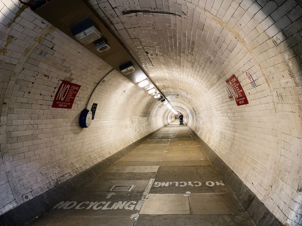 By this time, we were pondering whether to go through the Greenwich Foot Tunnel, a 370-meter underwater foot tunnel which crosses the river Thames, or take the ferry boat to the city center. Built in 1902, the tunnel is used by thousands of people every day, and is open to the public 24/7.
