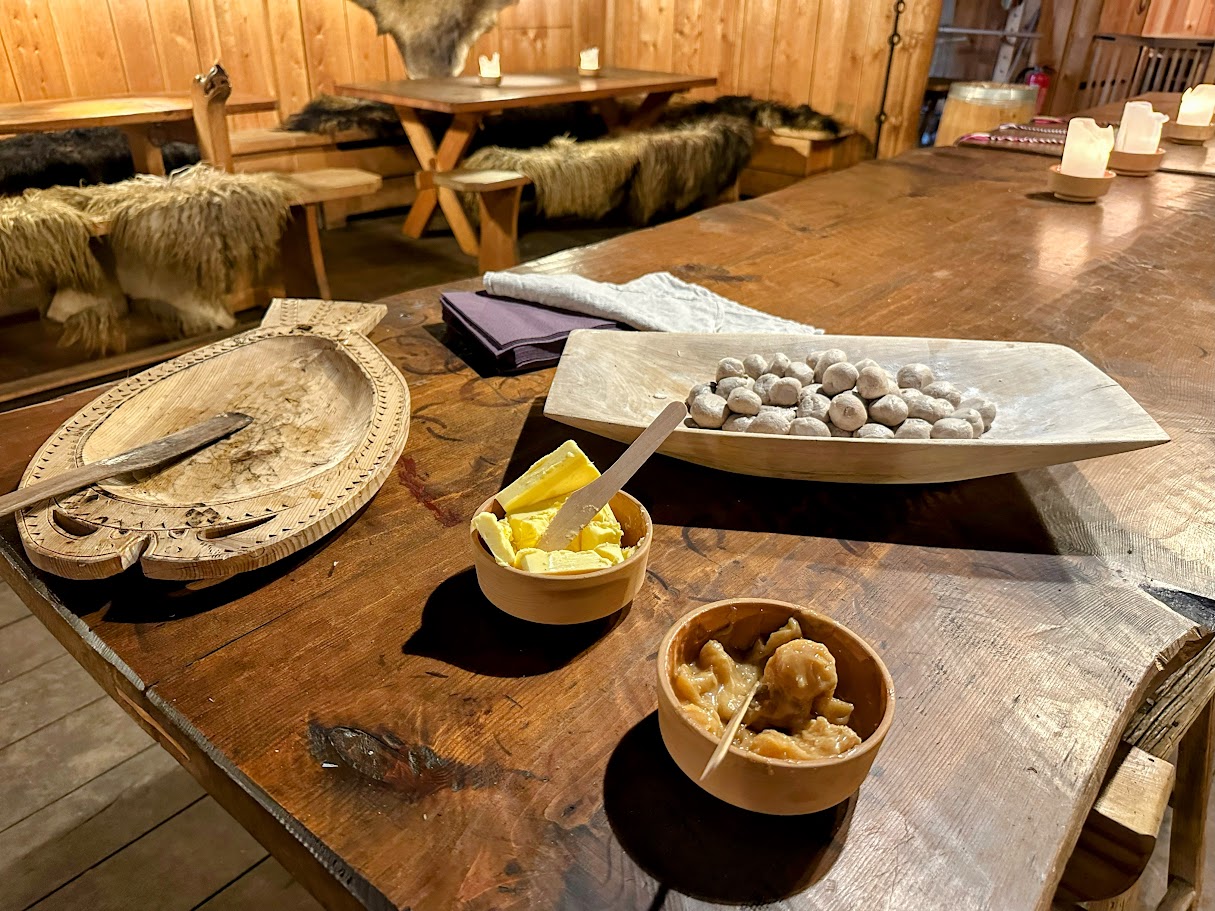 The ticket includes entrance to Gildehallen, or the guild hall. To get there, we walked past Borreparken, the area with the burial mounds for royalties dating all the way back to pre-Viking era.