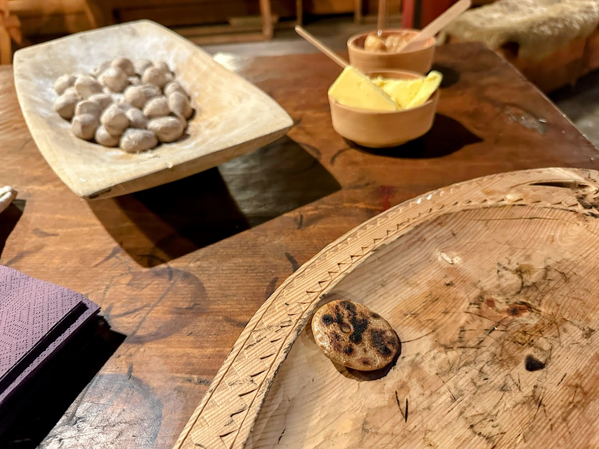On Easter Sunday, guests to the museum could try making traditional bread, made with just flour and water, baked/grilled in the open pit fire in the guild hall. Once cooked, you let it sit for a while, then spread butter and/or honey. It’s amazingly delicious! A treat we also had last Christmas eve, well, with crackers and not flat bread.