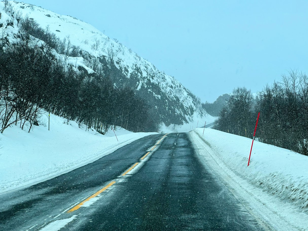 The first landscape we saw was amazing – rolling rocks, beautiful coasts, and we even spotted some reindeer. It also snowed a bit. The majority of the roads was clean and dry. My husband said that they don’t use salt on the roads, so it’s nice like that. And the cars are also better because of that. I wonder why it’s not possible in the south?