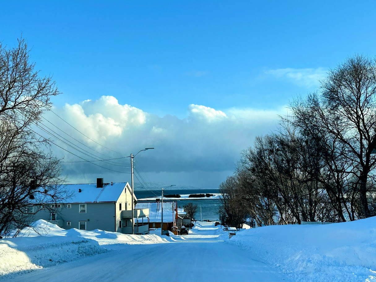 And so we went outside, and voila! It was freezing cold. It looked like it was so far from spring or summer. At first, I wanted to go to Bugøynes to try the king crabs, but then, we decided to head to Vadsø right away and drop our bags in the accommodation.